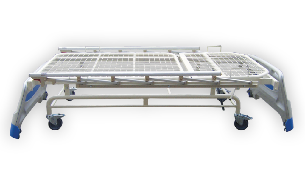 Ležeća površina izrađena od čelične žice u obliku mreže sa otvorima 50 x 50 mmStranice kreveta izrađene su od ABS a sa mogućnošćuskidanja čime se obezbeđuje bolji pristup pacijentu.Krevet se oslanje na 4 rotirajuća točka sa kočnicom prečnika 125 mm Opcija : – Dodatna zaštitna bočna ograda od aluminijuma – Dodatna zaštitna ograda od ABS-a (jednodelna)- Dodatno postavljanje trapeza sa ergonomskom ručkom- Dodatno postavljanje infuzionog stalka- Pozicioniranje segmenata pomoću navojnog vretena (kurbla, crank) Dimenzije:Spoljna Dužina 215 cmŠirina bez zaštitnih ograda 95 cmŠirina sa ogradama: sa Al ogradama 97cm / sa ABS ogradama 110 cmUnutrašnja Dužina x Širina 202 x 90 cmVisina od poda do ležeće površine dušeka 50 cmNAPOMENA : MOGUĆNOST PROMENA OSNOVNIH DIMENZIJA PREMA ZAHTEVU NARUČIOCA !Nosivost : 240 kgSWL : 280 kg