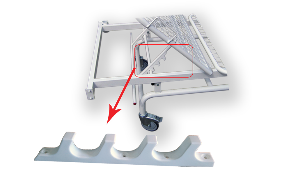 Izrađen je od čeličnih profila završno zaštićenih plastificiranjemNA ZAHTEV ANTIBAKTERIJSKIM PRAHOM EN 22196:2011 (samo bela boja RAL 9016)